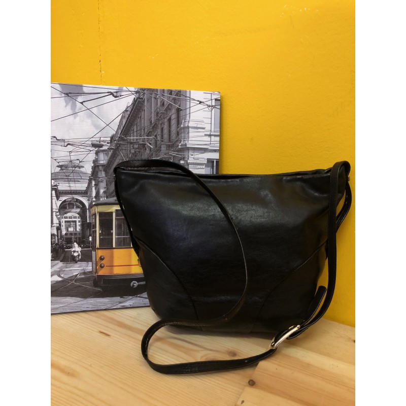 +393209216971Borsa in pelle nera con tracolla sottile - V12