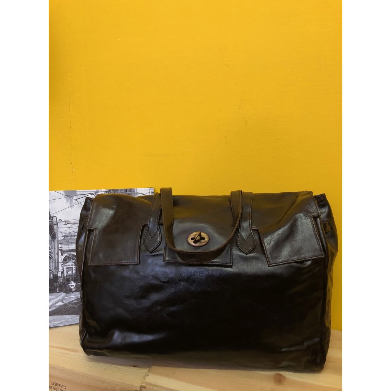 +393209216971Borsone in pelle testa di moro con chiusura oro - V47