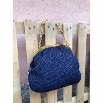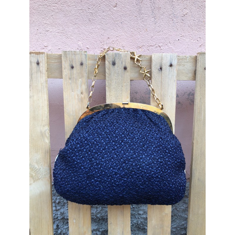 +393209216971Borsa in tessuto ricamato con dettagli oro stile marino